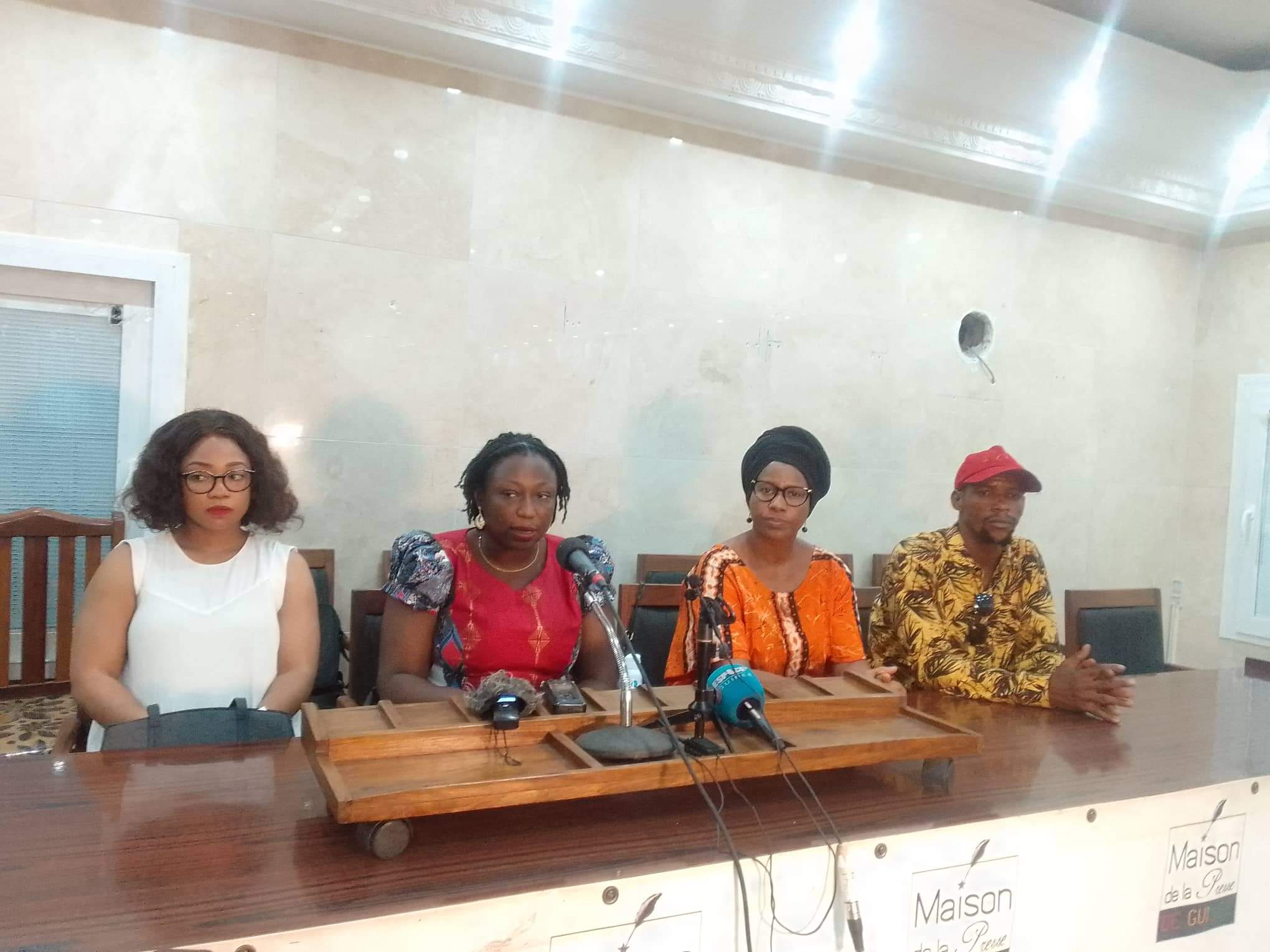 Reunis au sein d’un collectif les organisations de défense des droits de l’homme mon enfant ma vie F2DHG,club des jeunes fille leaders de Guinée AMali,GRiF ,OGDH ont animé une conférence de presse a la maison des journalistes,ce samedi 21 mai 2022 ,pour dénoncer la banalisation par la justice des dossiers de violences faites aux femmes en Guinée. Dans une déclaration lue par maitre Halimatou camara.