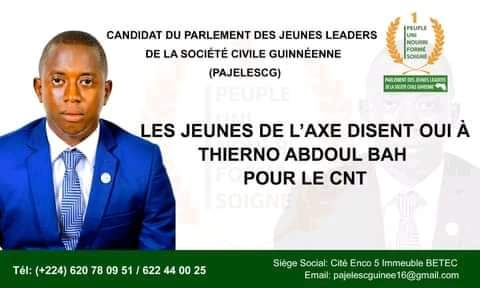 Dans cette conférence ce jeudi à la maison de la presse a kipe l ensemble des leaders des mouvements de jeunesse de l’axe était présent pour exprimer leurs soutiens a leurs candidat Thierno Abdoul bah de la plateforme parlementaire des jeunes leaders de la société civile.CiA fondateur de ong des enfants de la rue .le président du collectif agissons autrement .PjDD .MAG tous on pris la parole pour dénoncer l’ingérence du ministère de la jeunesse dans le choix et demande au CNRD de tenir compte du consensus des jeunes de l’axe .car disent il que l expérience le professionnalisme le programme .de monsieur bah thierno Abdoul mérite d’être soutenu par les jeunes de Guinée car ces un combattant