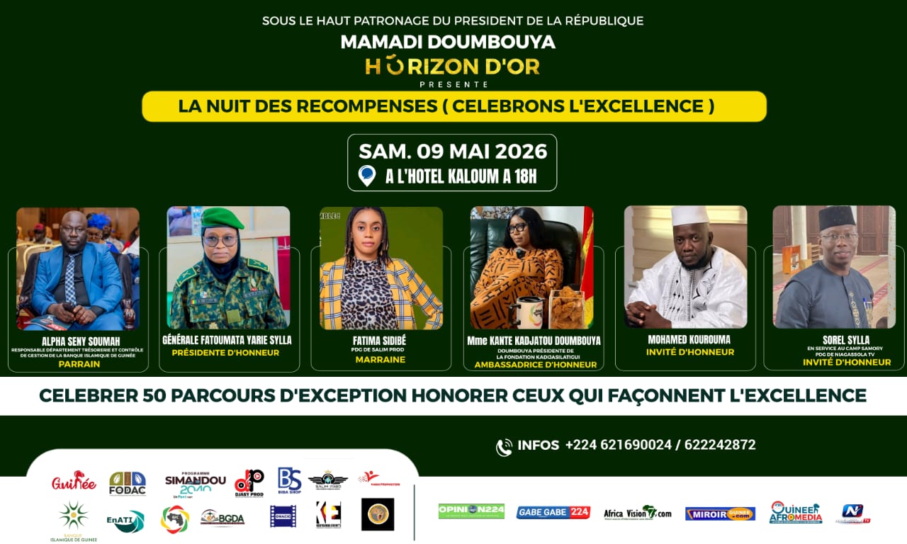 Cet événement prestigieux, prévu le 9 mai 2026 à l’hôtel Kaloum, représente bien plus qu’une simple cérémonie. Il incarne notre volonté commune d’honorer l’excellence dans divers domaines d’activité et de célébrer les acteurs qui contribuent de manière significative au développement et à l’épanouissement de notre pays.